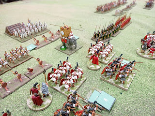 A big cavalry/light infantry bash on the Roman left flank saw early success for Hannibal's men with one unit of Gauls standing up to repeated attacks. But in the end they were over come and the advantage went to Rome.