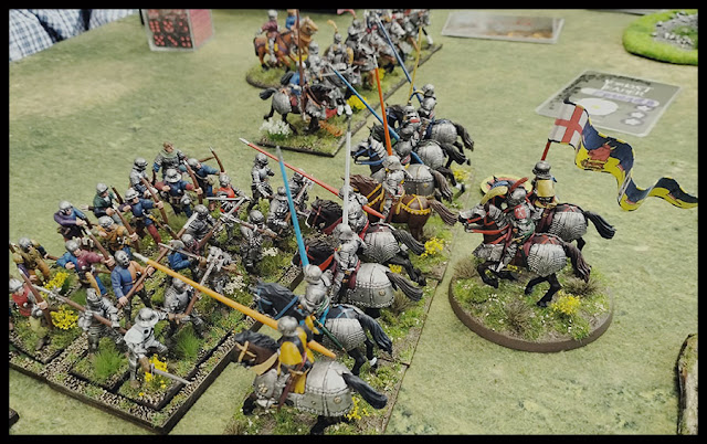 Tudor managed to halt his troops and turn them around but a "bonus card" played by Warwick prevented them from being able to charge his flank and he took advantage of this to charge Percy before he could reinforce his knights with his billmen. The Percy's took hard casualties and those remaining fled.