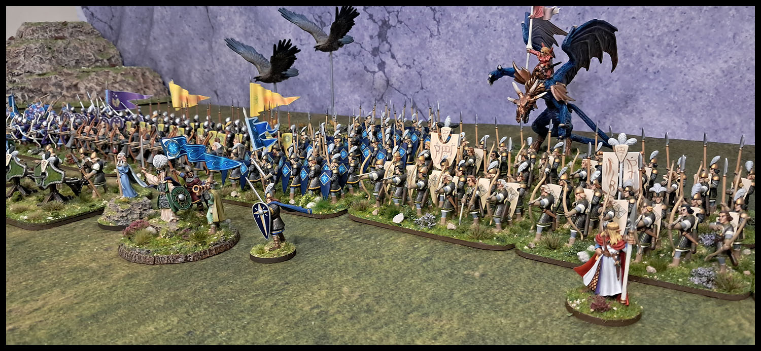 This is the right of the shieldwall. You can see the front rank of thegns and the fryd at the rear nice and clear. This host has only a few missile troops deployed as skirmishers. Their main strength lay in a solid shieldwall and little else. I have been thinking what kind of fantastic elements I can add to the army to create a fantasy version but I haven't come up with anything suitable at this stage.